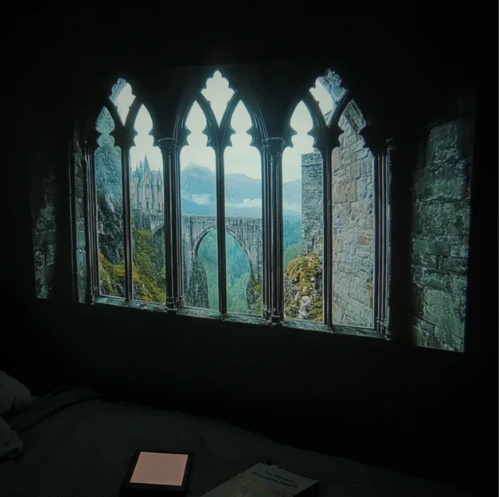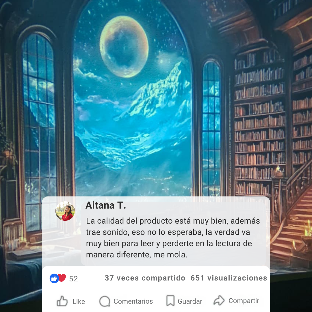 Abres tu libro, y con un solo clic, tu pared se transforma en un acogedor rincón en las Tierras Altas con la niebla acariciando la ventana, un balcón con vistas a una galaxia de nebulosas.